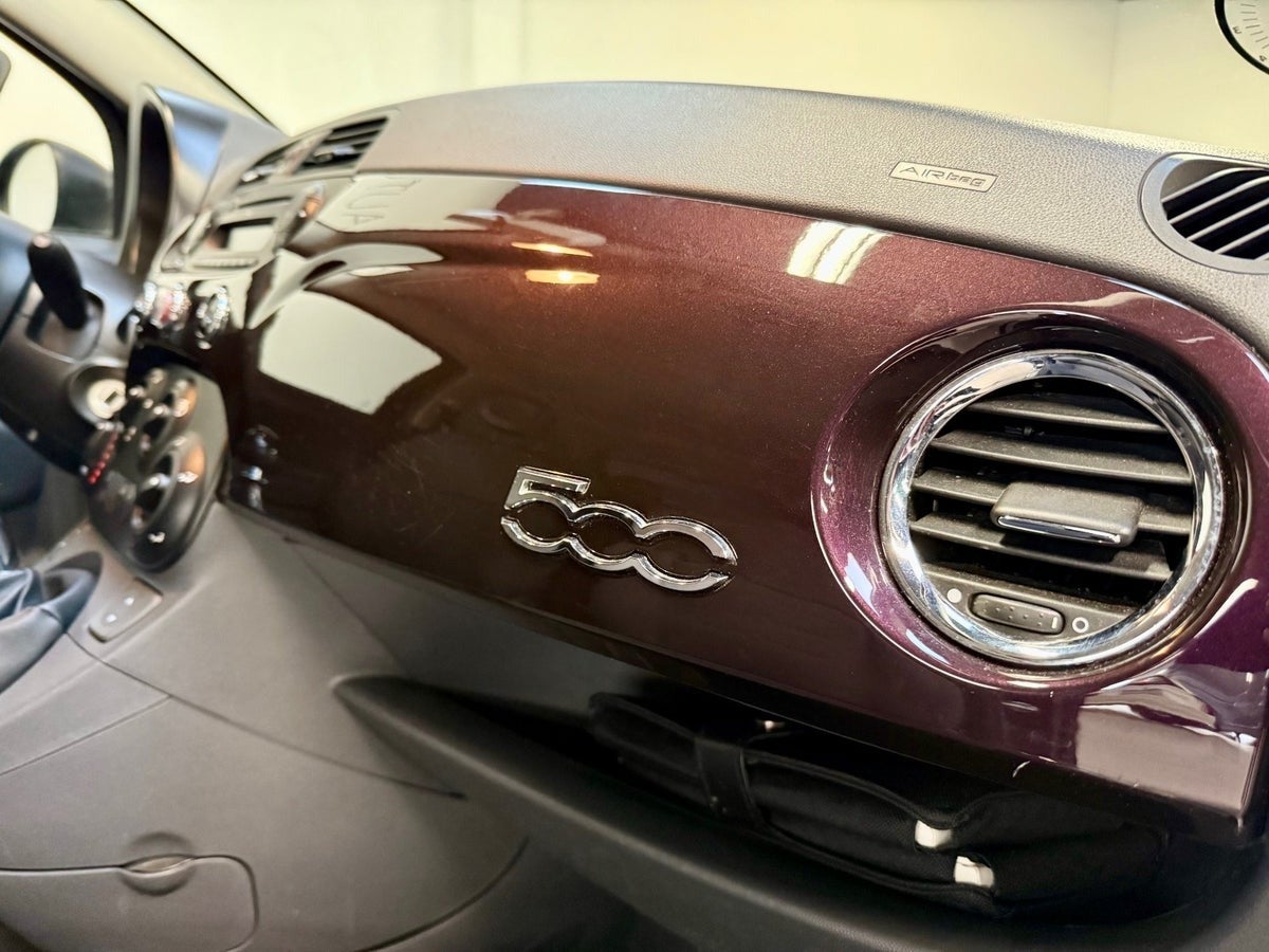 Charmerende Fiat 500 med lav km. i en flot lilla metallak med indfarvet interiørlister.⭐️ NYSYNET D. 27/11-2025