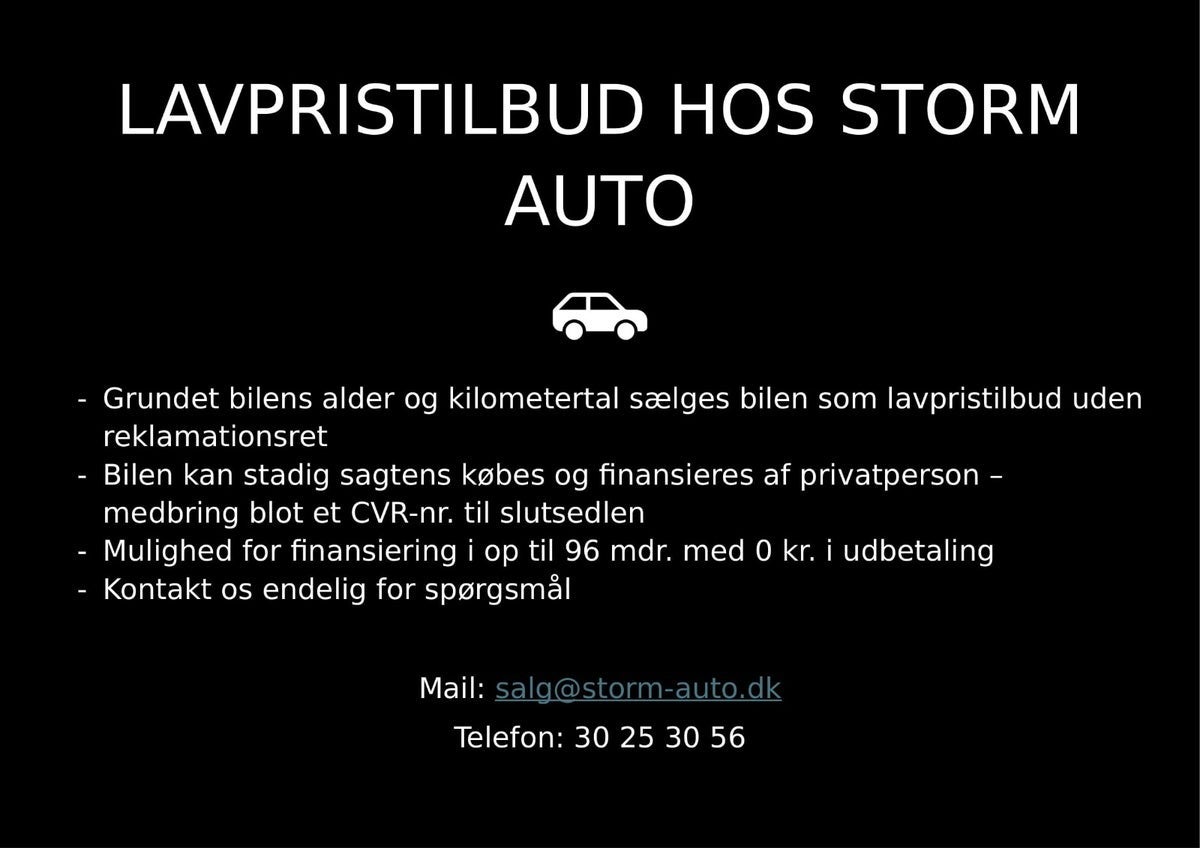 For fremvisning / prøvekørsel / tilbud - Kontakt Nicolaj på telefon 30 25 30 56 eller mail salg@storm-auto.dk